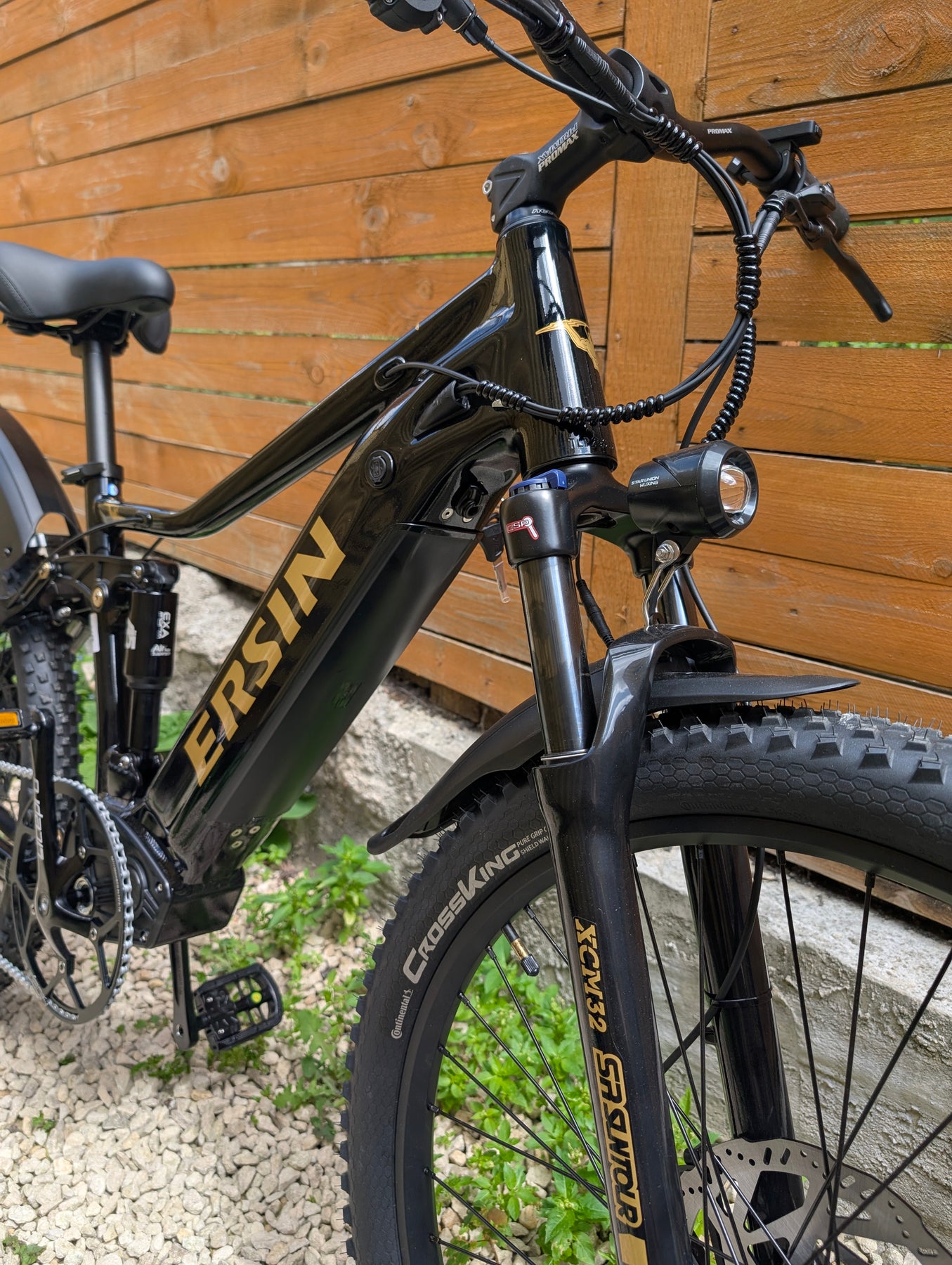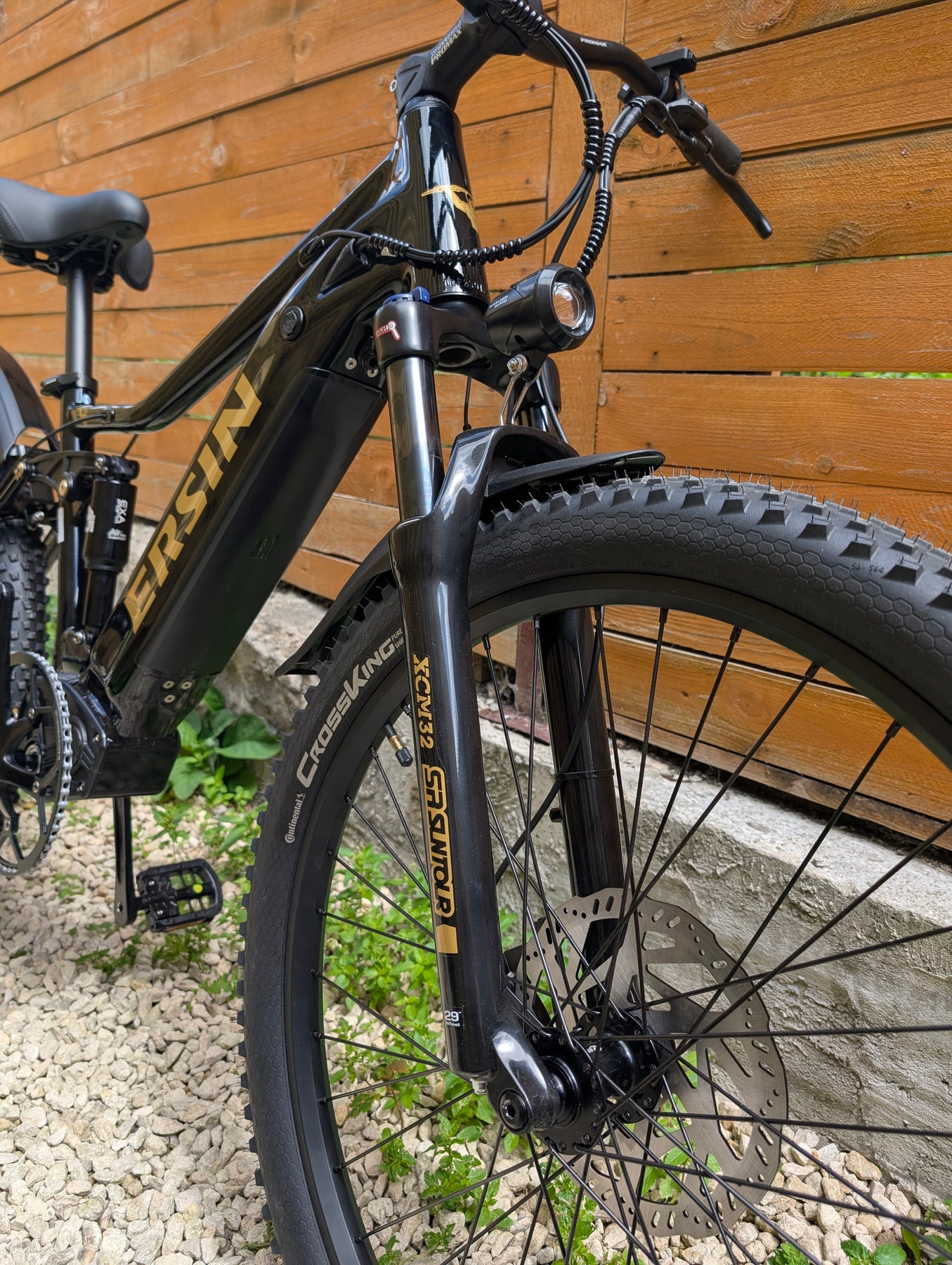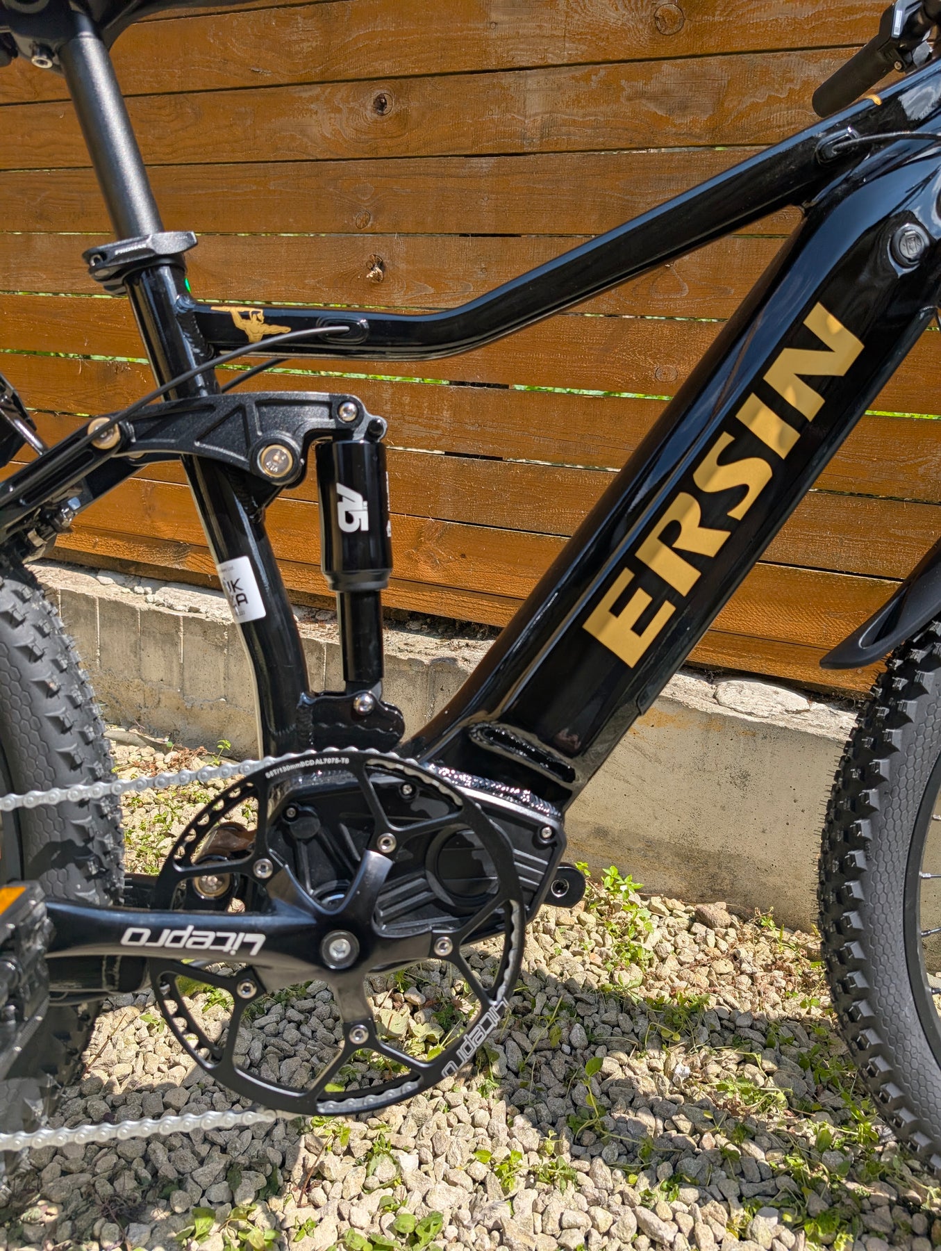 This is our full suspension ERSIN MTB. 48V 1000W electric bike. Extremely reliably at speeds of 30MPH with the EXA-A5 suspension at the rear and fully adjustable and locking XCM fork suspension at the front. Some of the highest-grade parts have been used on this bike making it capable of tackling any terrain.