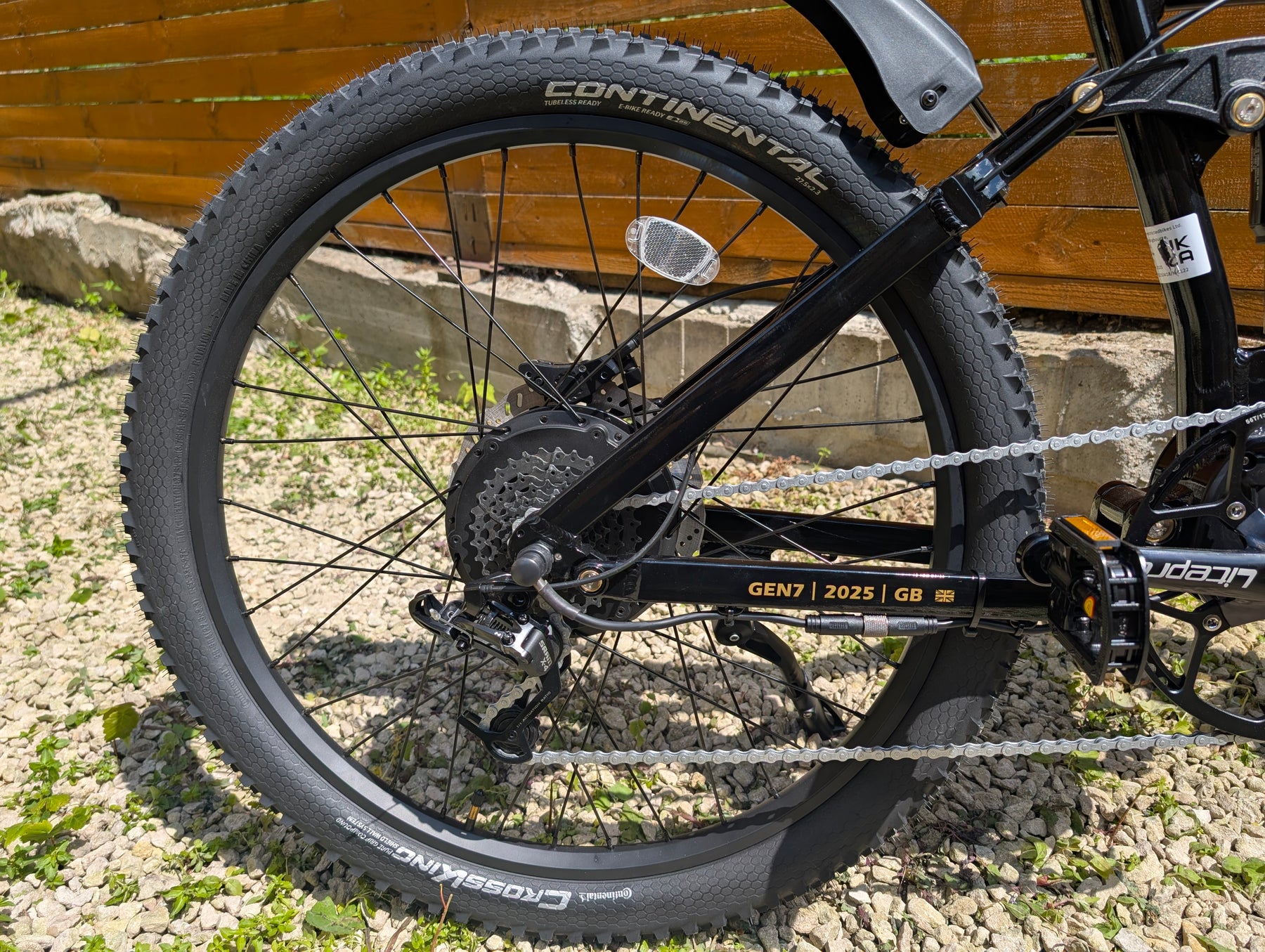 This is the new GEN 7 model with the New1000W LAX motors, All Black Forks with Axle Thru, Sram Gears, Sram X4 trigger shifter, Sram derailleur, Stainless steel screws all round, Thicker spokes, zinc plated chain, D710 XOD calipers, 203mm thicker rotors, Huge 56T crank, Softer and thicker seat, Upgraded light, Metal folding pedals. We only use Continental tires now