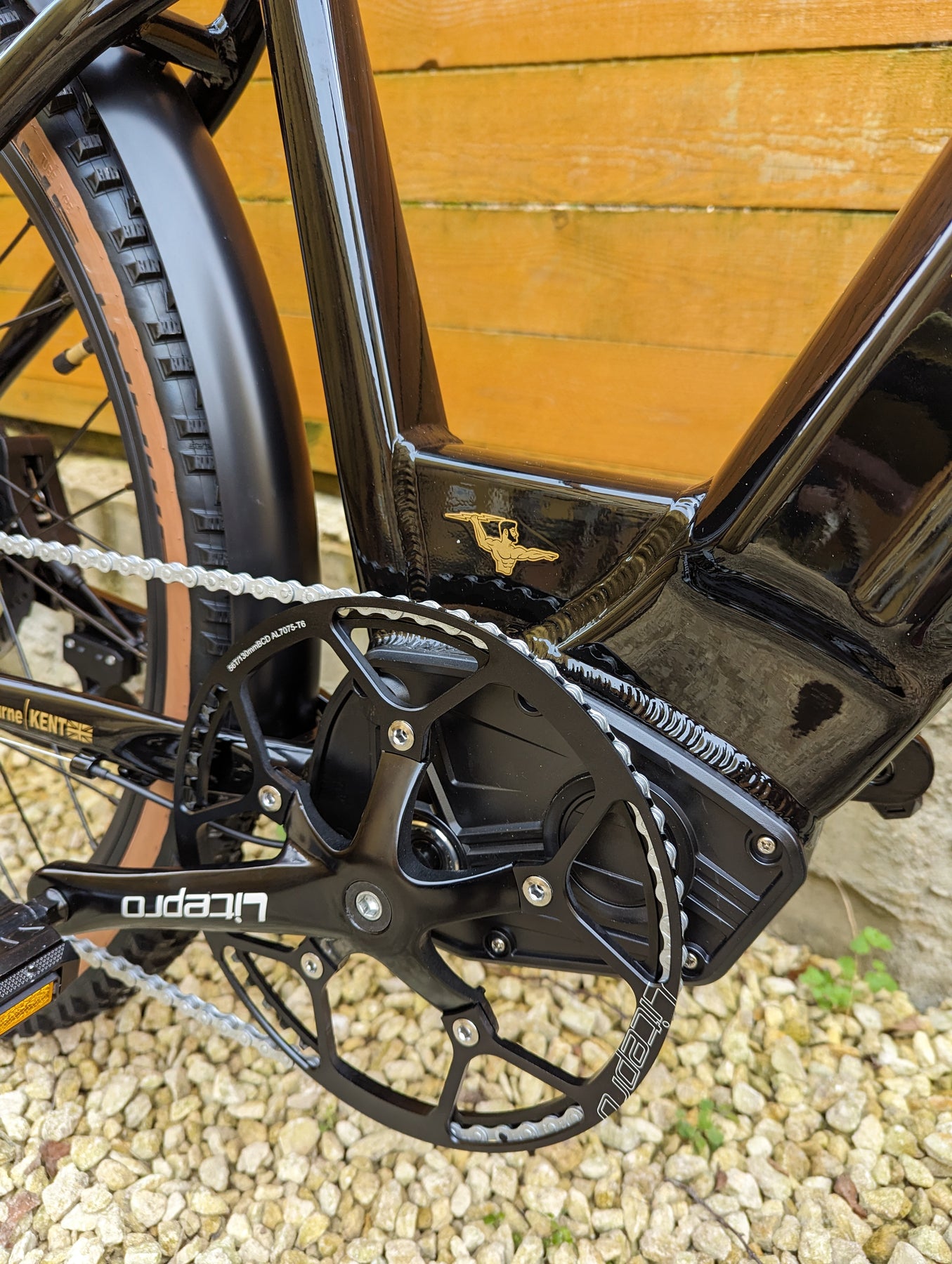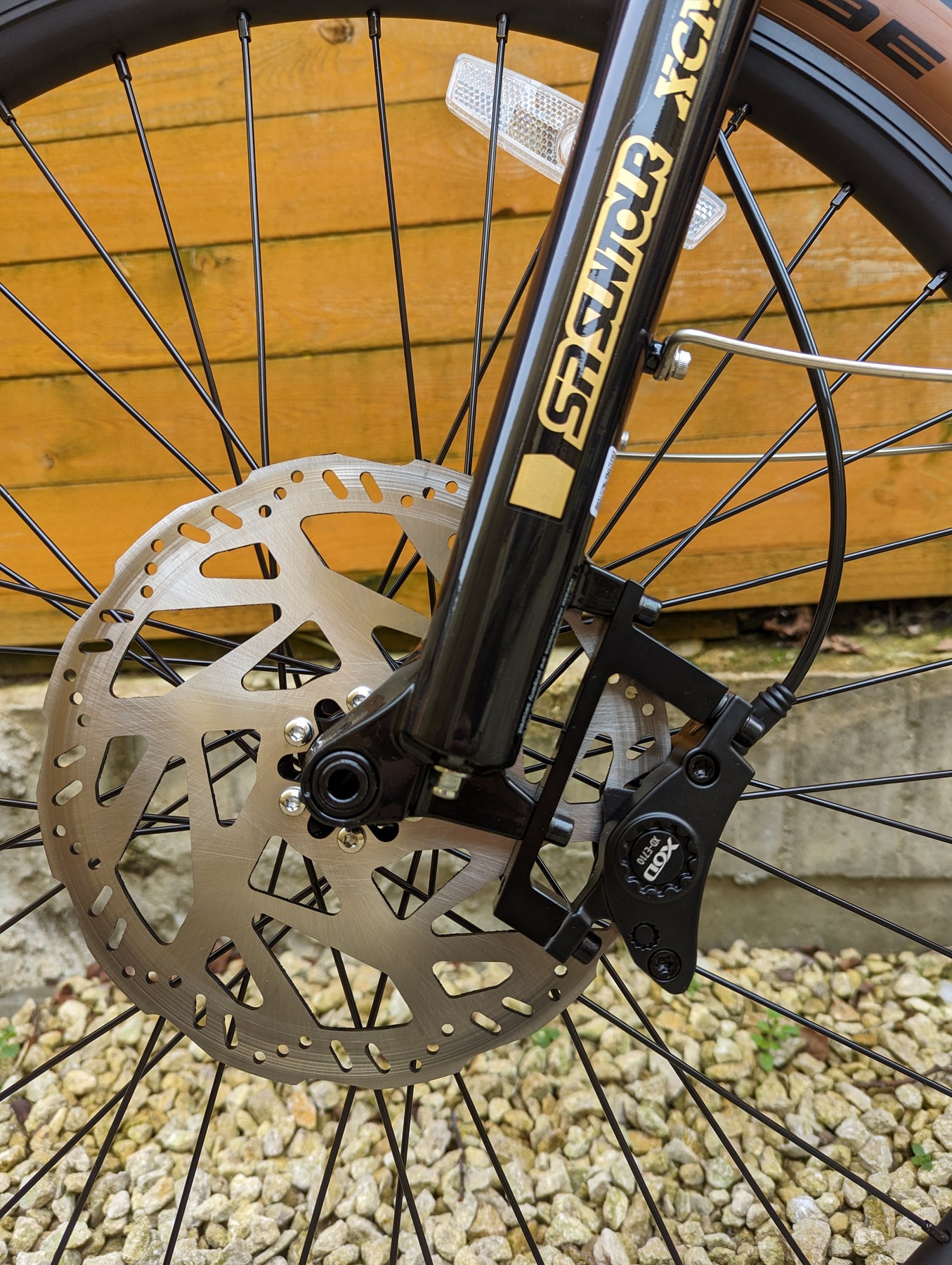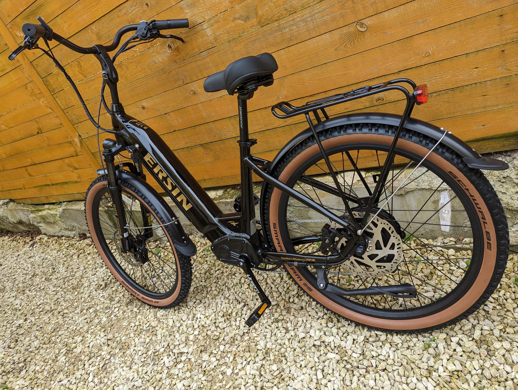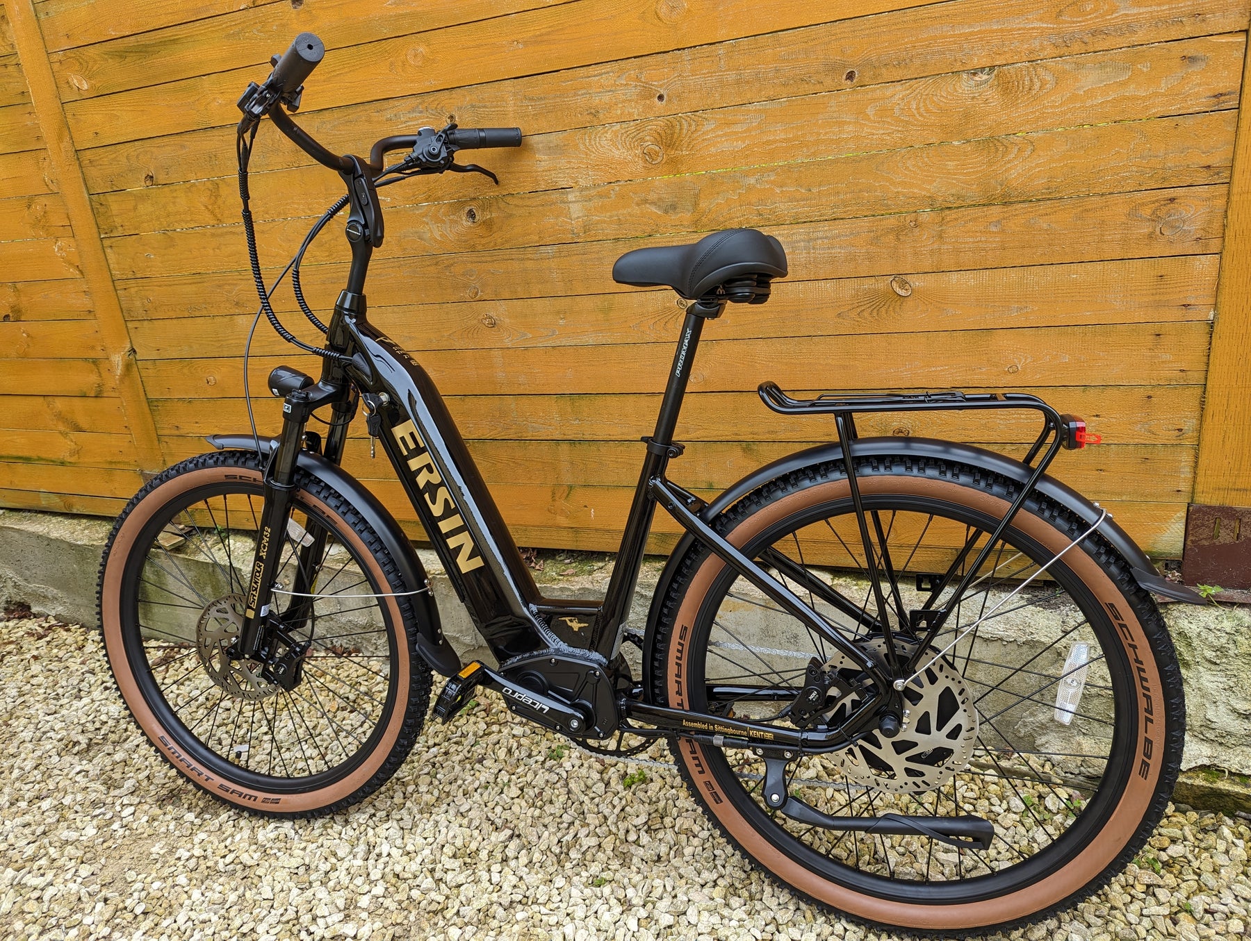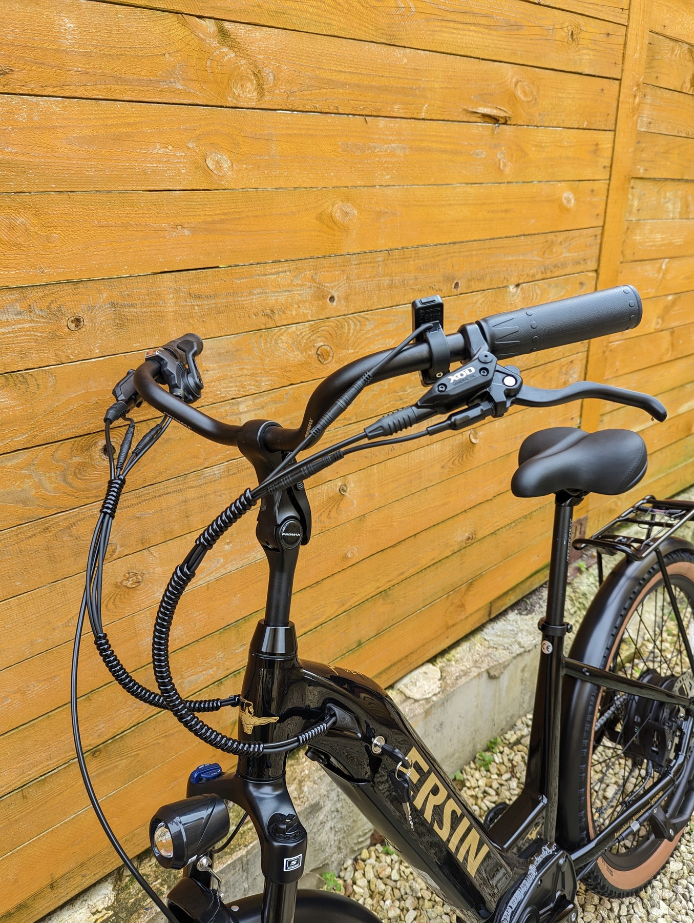 Upgrades: Tan Wall tires, All Black Forks with Axle Thru, Sram Gears, Sram X4 trigger shifter, Sram X4 derailleur, Stainless steel screws all round, Thicker spokes, Zinc plated chain, D710 XOD calipers, 203mm thicker rotors, Huge 56T crank, Softer and thicker seat, Upgraded lights, Metal folding pedals.